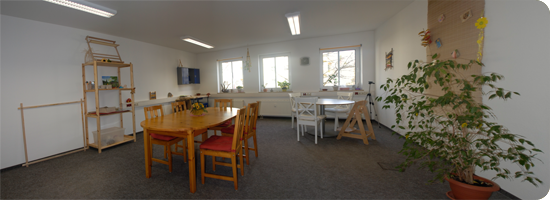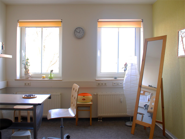 Dies ist mit 40m² der größte Behandlungsraum und ermöglicht eine gute Durchführung von Gruppentherapien, sowie Einzeltherapien mit gestalttherapeutischen und handwerklichen Techniken.